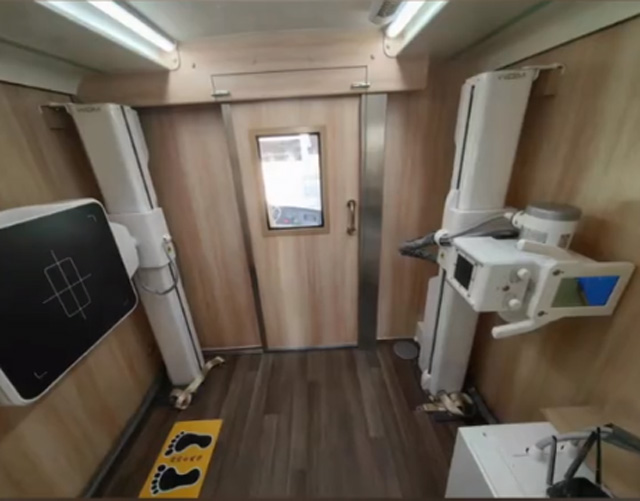 有時(shí)候胸口不舒服,腰不好怎么辦呢?車載DR可以實(shí)現(xiàn)就地檢查,不需要到醫(yī)院拍胸片進(jìn)行DR超聲檢查。大家能在醫(yī)院完成的體檢項(xiàng)目,都可以實(shí)現(xiàn)。醫(yī)生通過外面的電腦,打開和控制設(shè)備。DR會(huì)根據(jù)檢查者的身高體型,自動(dòng)判斷位置移動(dòng)到檢查的區(qū)域。自動(dòng)成像,并且在服務(wù)器里面記錄相應(yīng)的數(shù)據(jù)。效率也非常高,當(dāng)天檢查就能當(dāng)天出結(jié)果??梢詽M足突發(fā)事件中傷病員的頸椎、胸椎、腰椎、四肢骨骼、胸部、骨盆、各個(gè)關(guān)節(jié)全身的數(shù)字化DR檢查需求。
