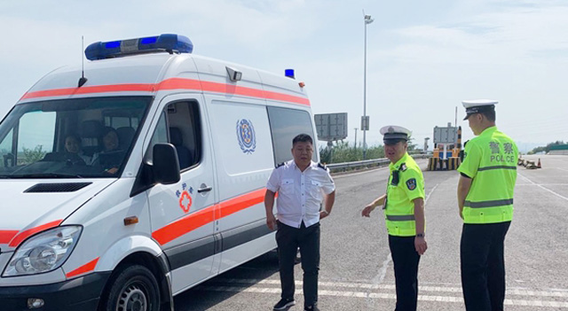 送病人前往醫(yī)院的救護(hù)車上高速時(shí),院前救助保障機(jī)制,保持信息溝通,高速交警支隊(duì)開辟“綠色通道”護(hù)救護(hù)車順暢通行,為搶救傷員贏得寶貴時(shí)間。一路上,燈閃爍鳴笛開道,120救護(hù)車緊隨其后。最大限度為重病患者縮短路面上的時(shí)間,為這位重病患者開啟了“生命通道”,確保病人得到及時(shí)、有效救治。