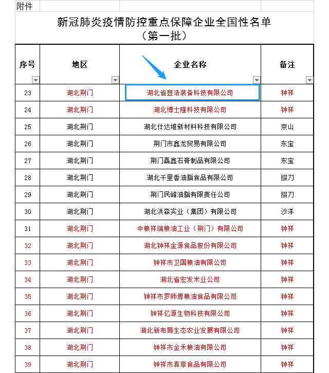 湖北顯浩被省經(jīng)信廳列為全國新冠肺炎疫情防控重點保障企業(yè)